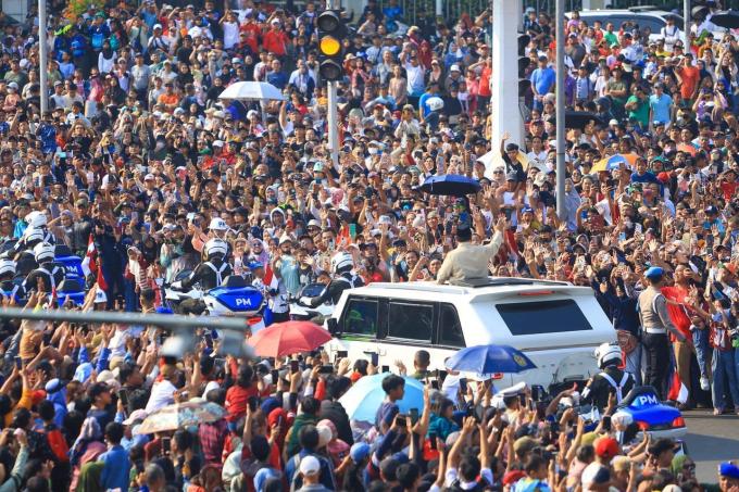 Masyarakat Sambut Antusias Iring-iringan Presiden Prabowo Menuju Upacara HUT TNI ke-80