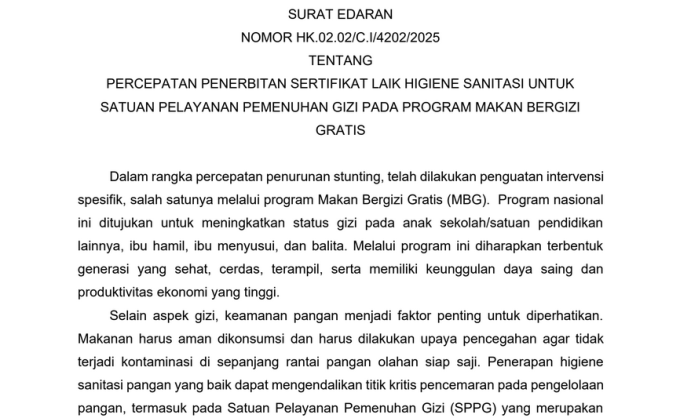 Kemenkes Percepat Penerbitan Sertifikat Higiene untuk Dapur MBG